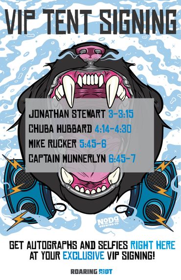 We'll be publishing the schedule for legends signing in advance of the Kickoff Jam - each attendee will be permitted to bring in ONE ITEM per ticket holder (not one item per legend) to be signed. Additional logo'd items will be available for purchase and proceeds will benefit the Roaring Riot Foundation. Want to bring more? Grab a VIP ticket!