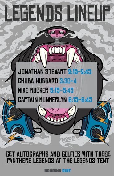 With your Jam Pass, you'll have access to the LEGENDS TENT, where Panthers Legends will be signing autographs and taking selfies with every Panthers fan!
